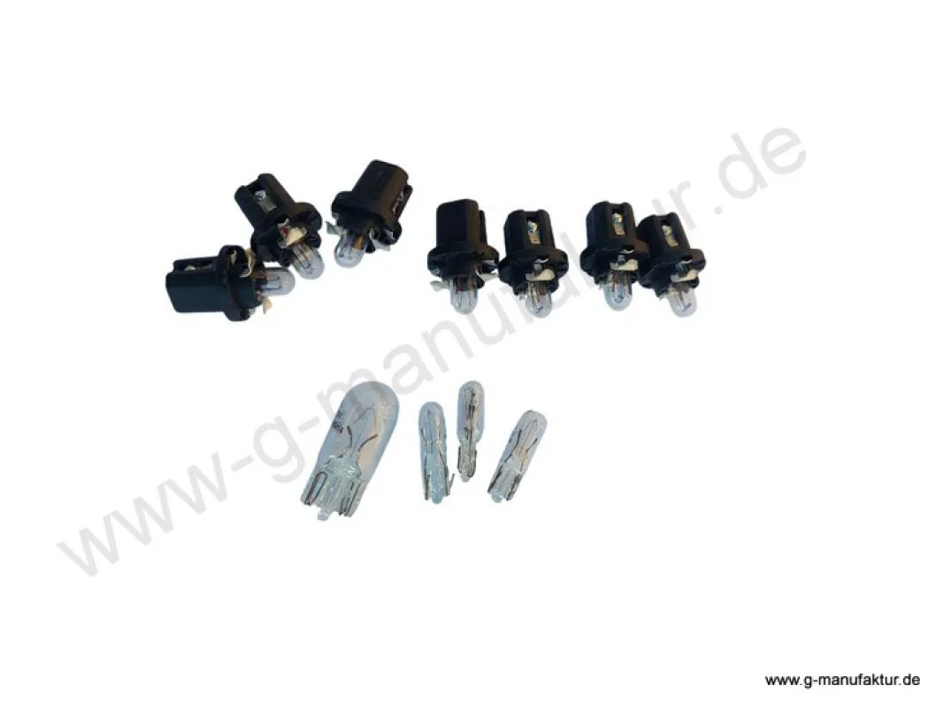 Teilepaket/Set Glühlampen für Tacho und Kombiinstrument rund 460/(461) 12 V ab Bj. 82 Inhalt:-7x Instrumentenbeleuchtung Kombiinstrument 1,2 W mit Kunststofffassung-3x Instumentenbeleuchtung Glassokellampe 1,2 W für Tacho(ohne Fassung)-1x Sockellampe (ohne Fassung) Ladekontrolleuchte 3W